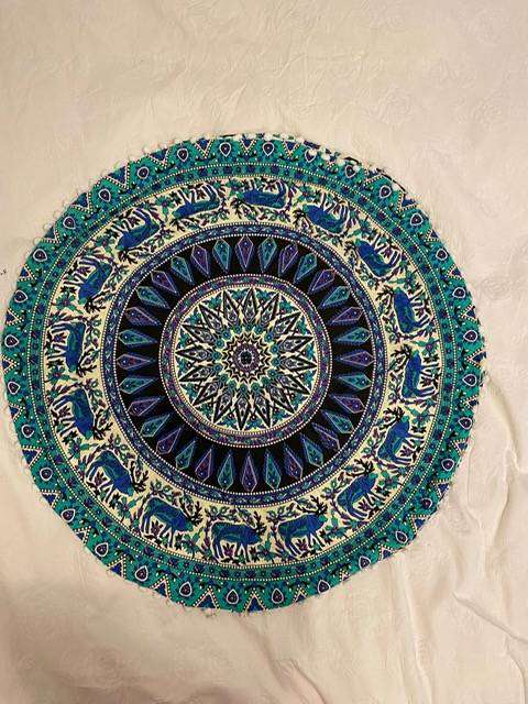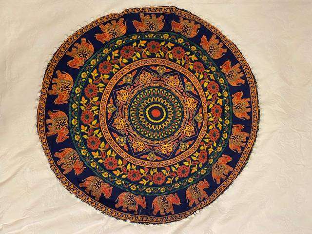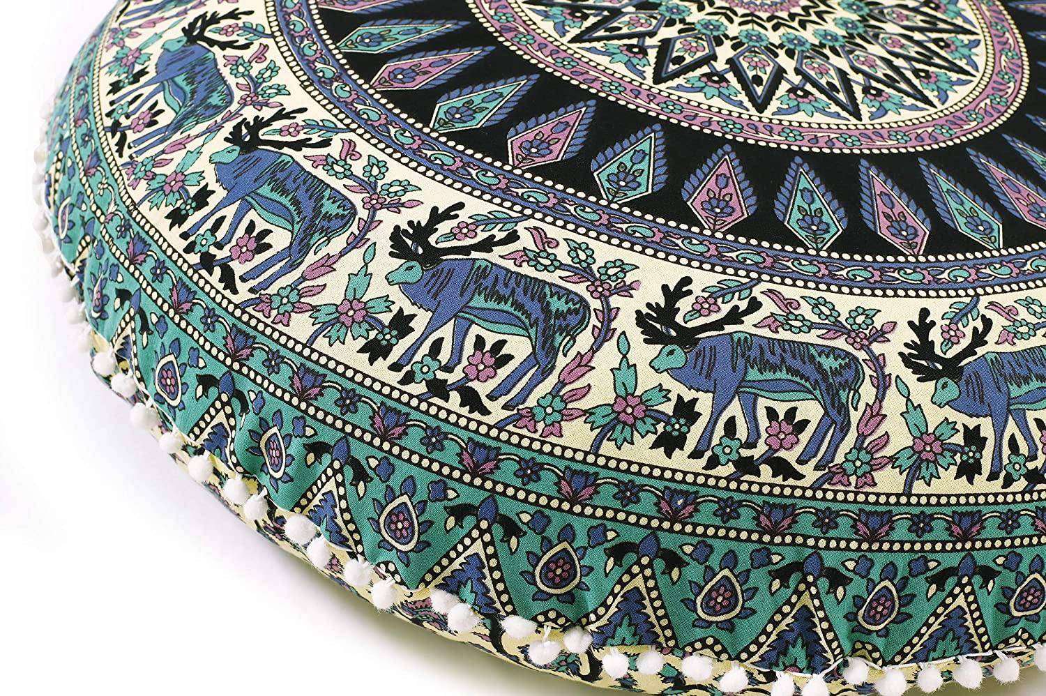 Round Indian Floor Cushion Cover – Cotton Mandala Decorated (32 inches)
